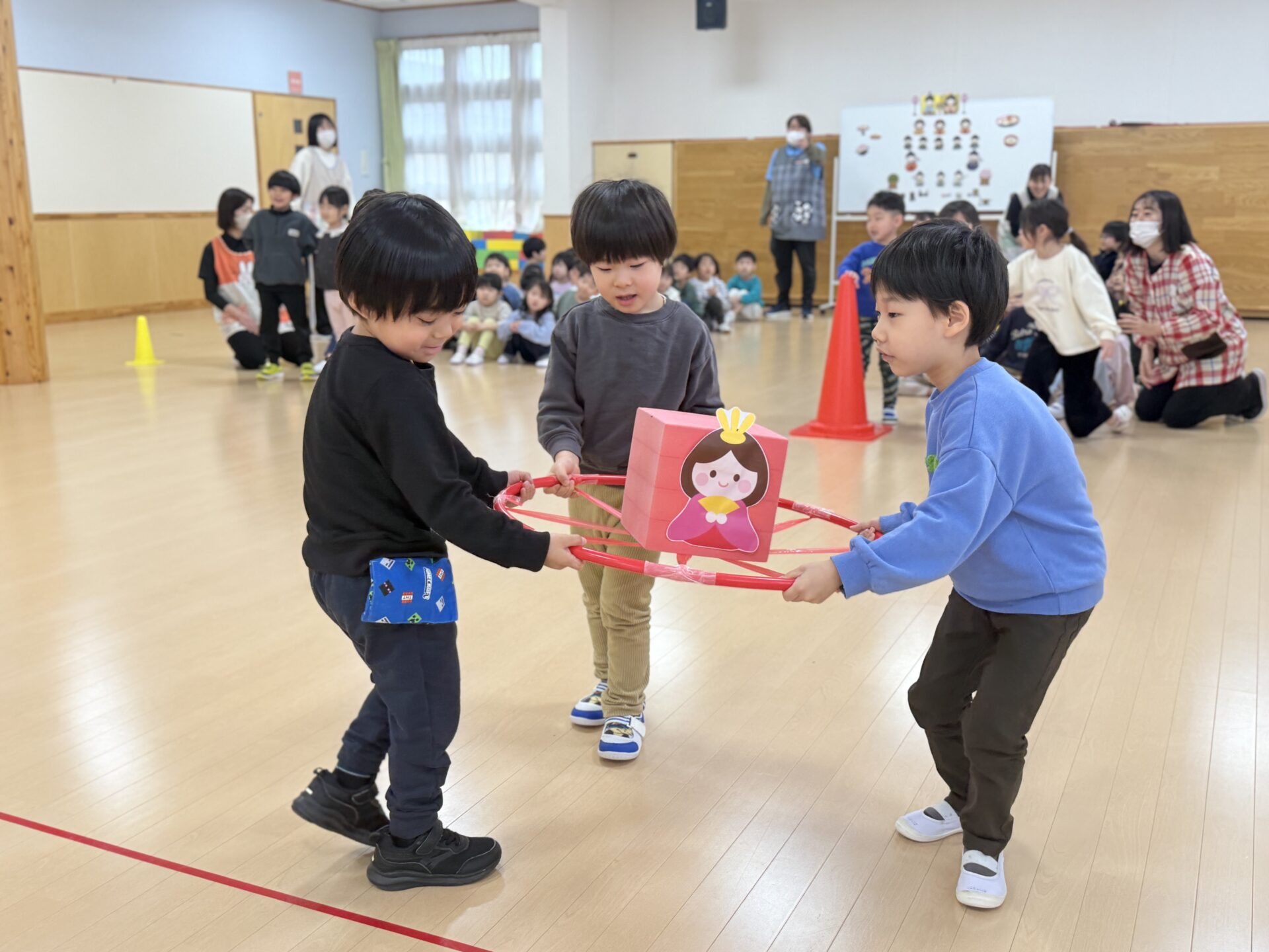 もうすぐ節分! この日、ほし組さんは、遊戯室で 豆まきごっこをしていましたよ! …