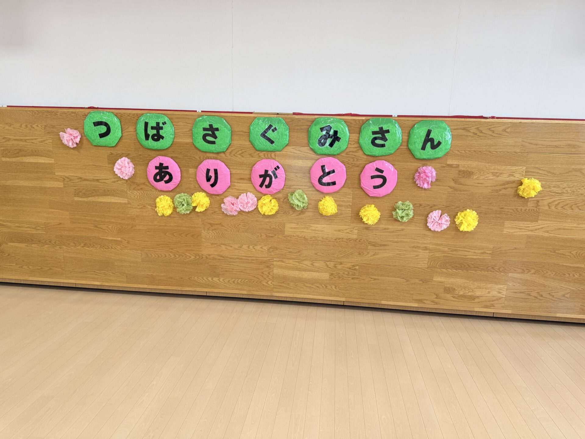 明日はいよいよつばさ組ありがとう会!! 今日は2階遊戯室の飾りつけ♪ 「つばさ組さ…