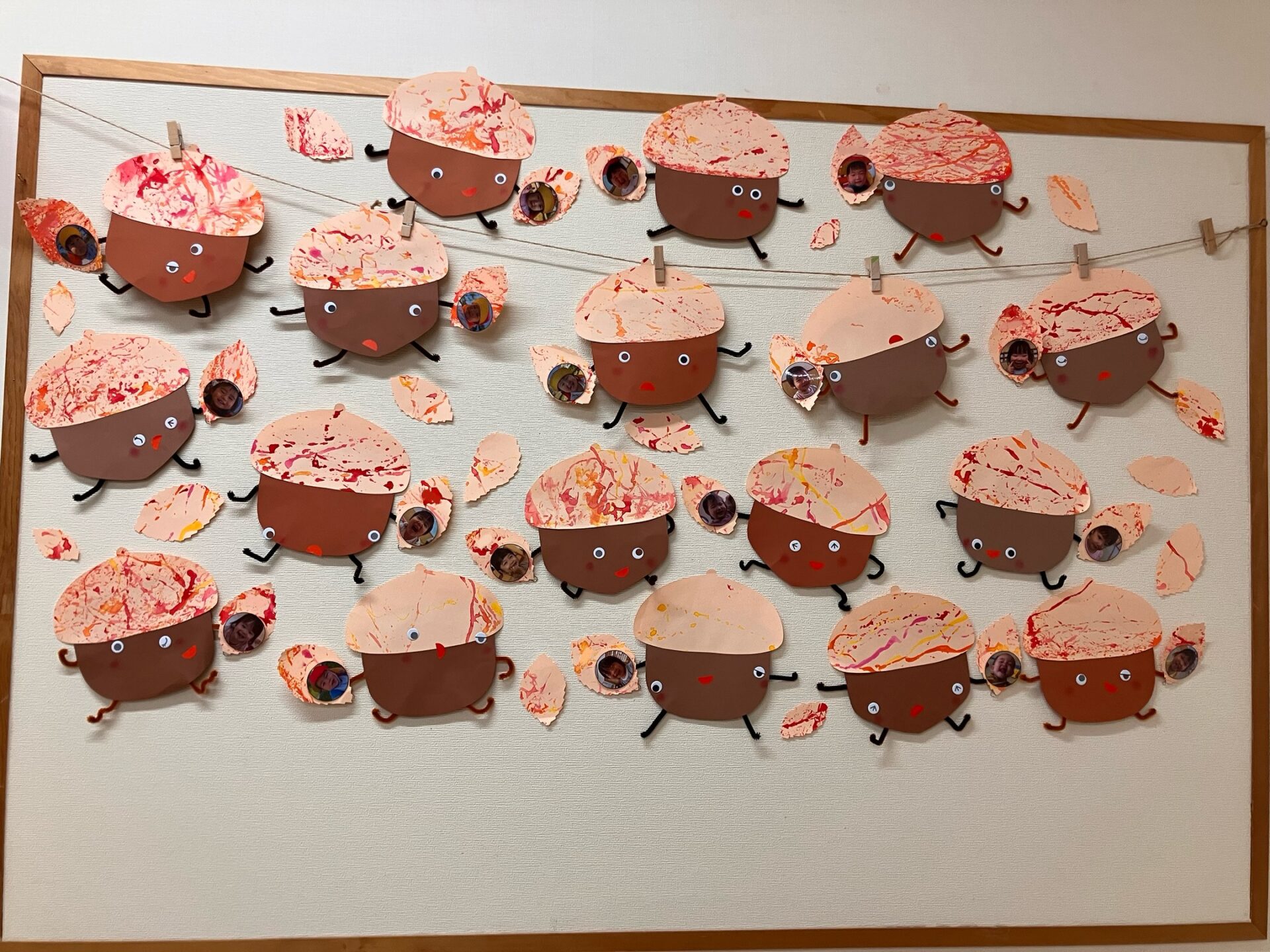 文化会館で拾ってきたドングリを使って ドングリ製作をしました! まずはドングリに絵の具…