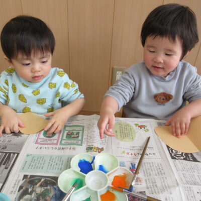 こいのぼりは、タンポ(ティッシュを丸めて布で包んだもの)を使い、子どもたちが色を付けていきます🎨🖌