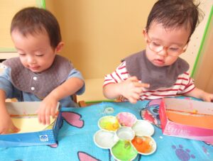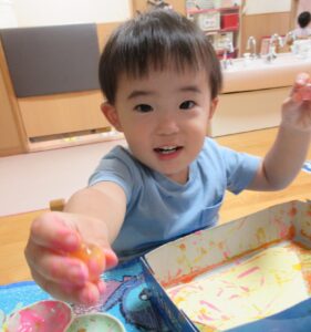 手についた絵の具にビックリ😲