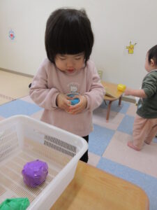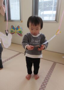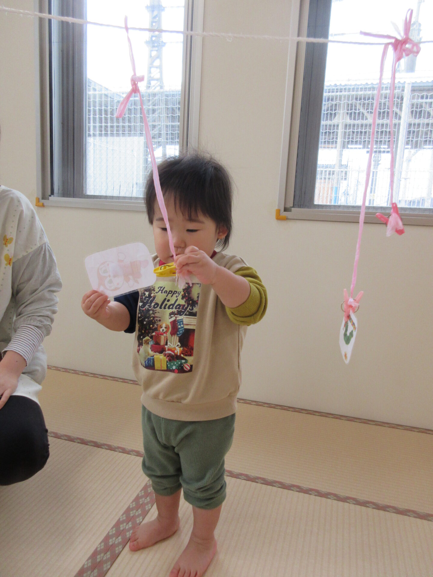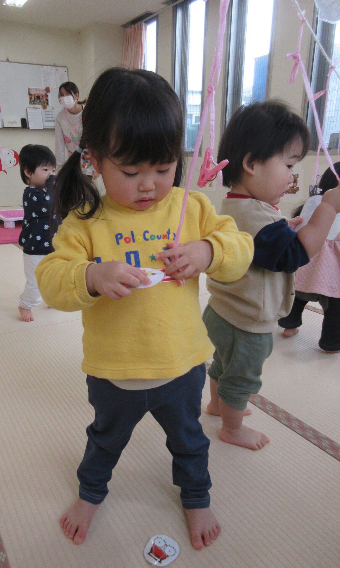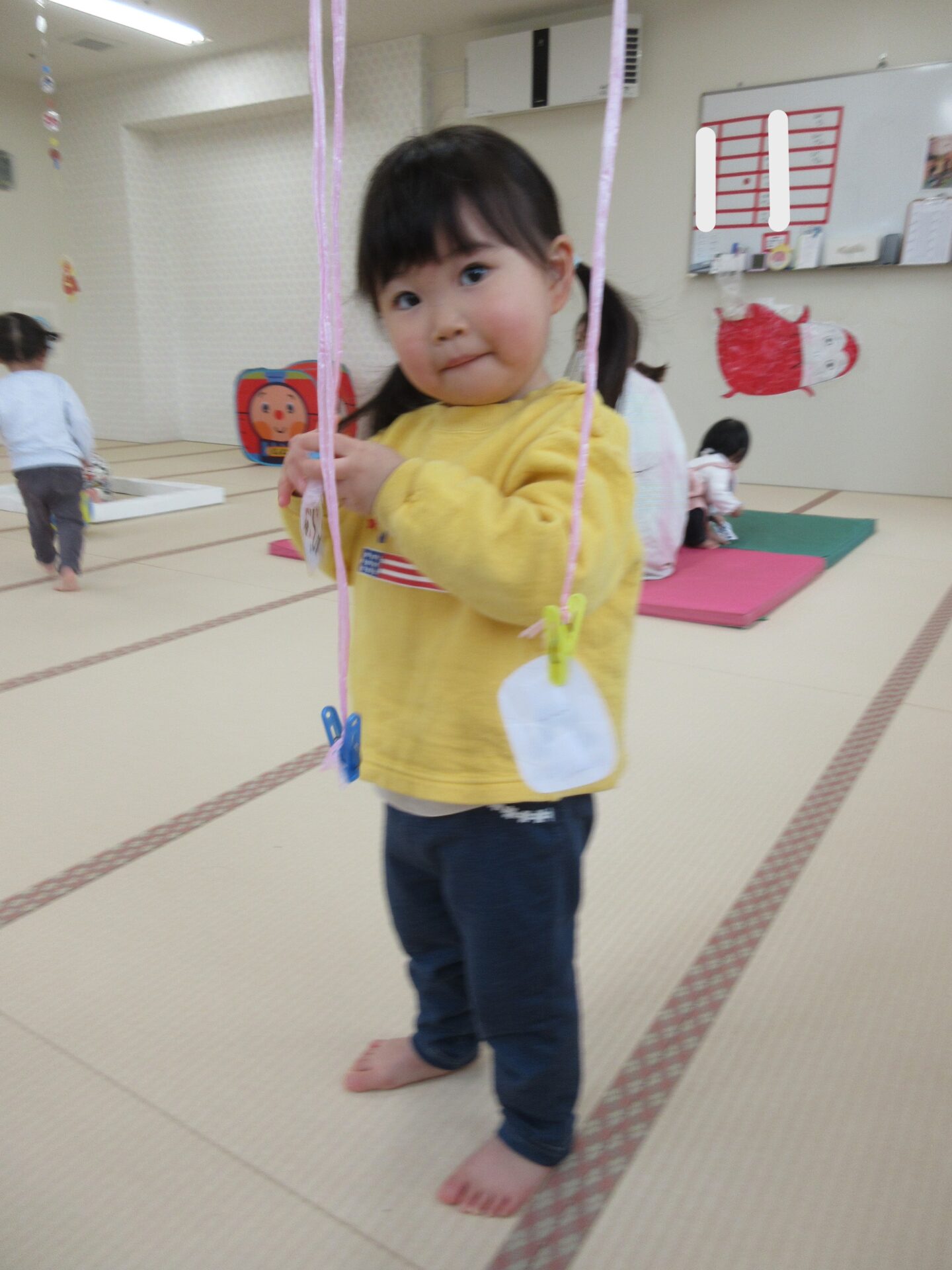 ひかり組さんは手先が器用になってきて、自分で洗濯ばさみに付けられる子も!