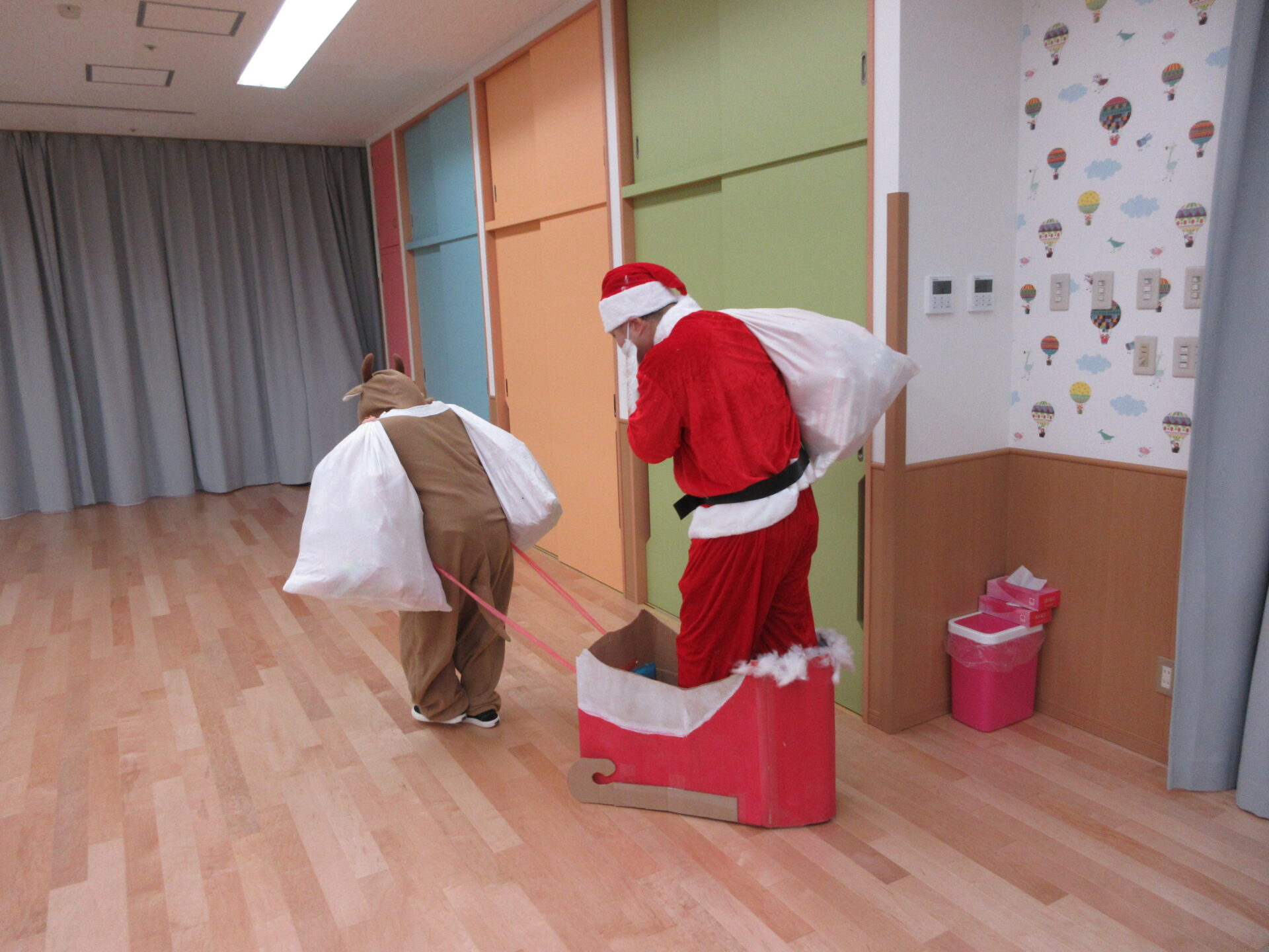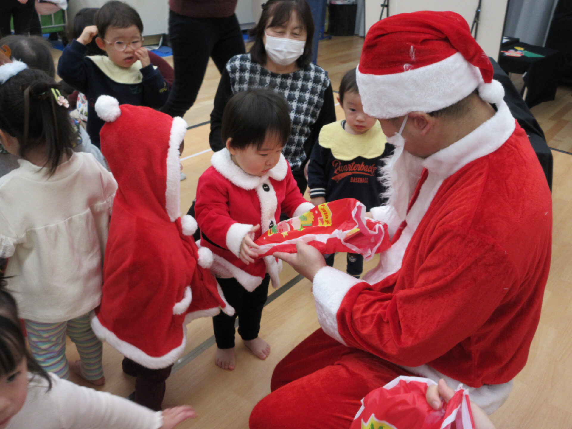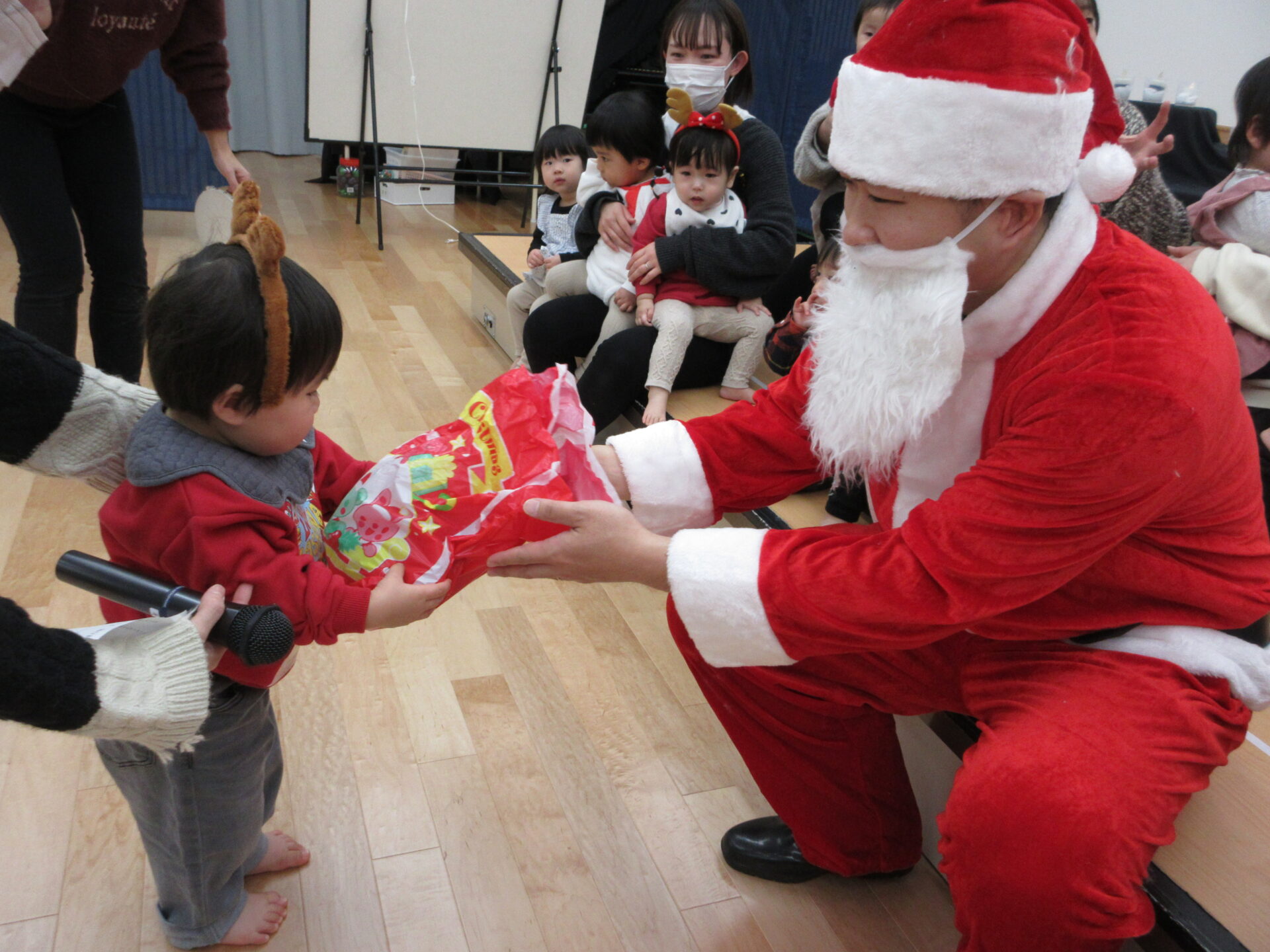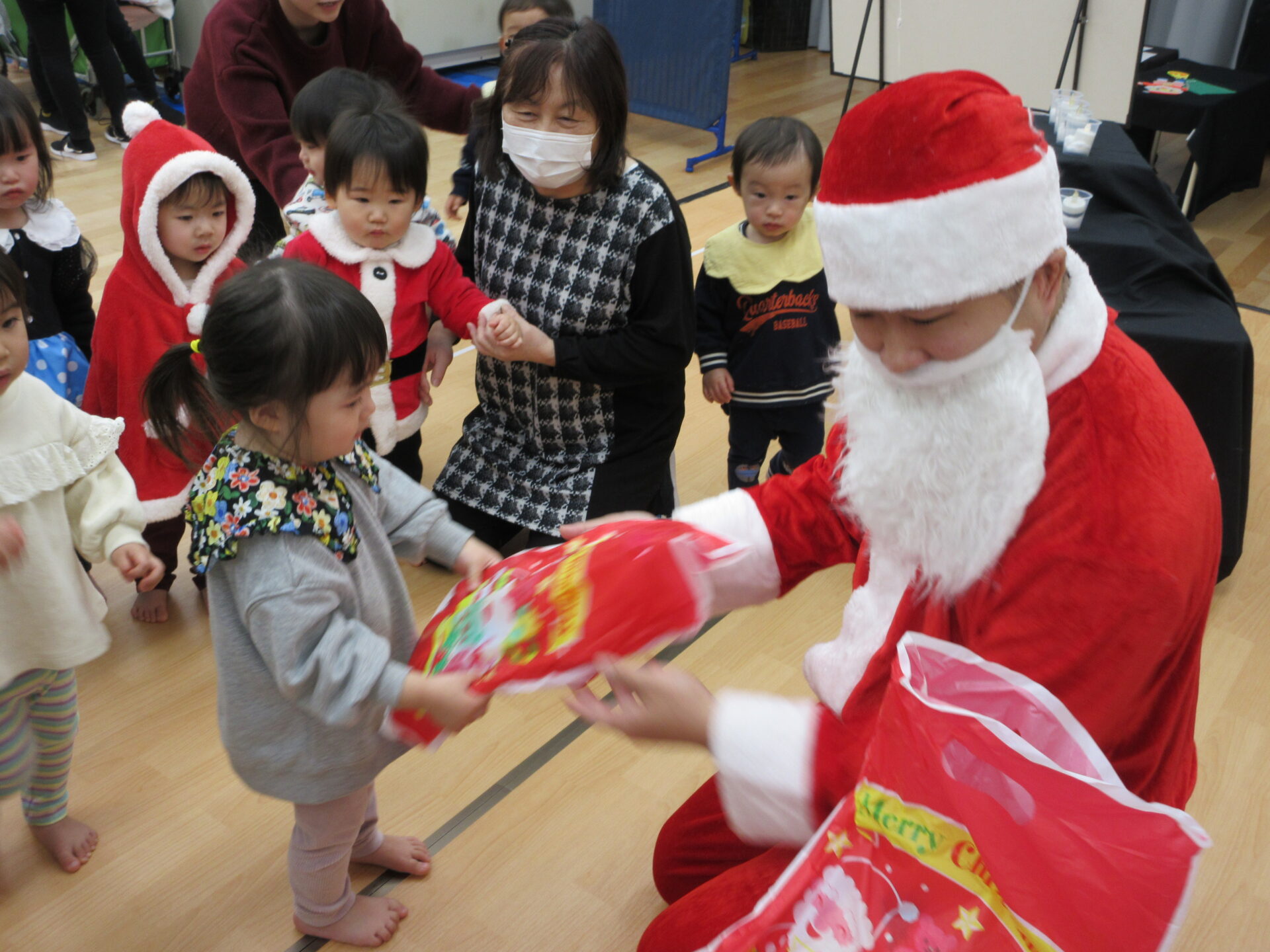 大きなプレゼント袋を持って登場したサンタさんに
