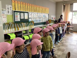 この日は、みんなで外ヶ輪小学校に見学に行きました!