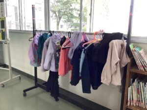 上着はハンガーにかけているね~保育園とは違うね・・・