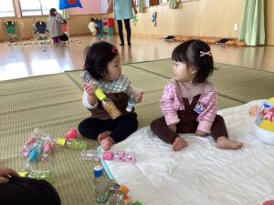 「こーすると、たのしーよね」「うん」と
