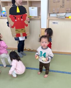 節分の日、ひかり組さんはお部屋で