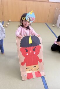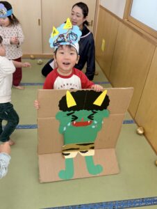 製作で作った鬼のお面もつけてくれましたよ!