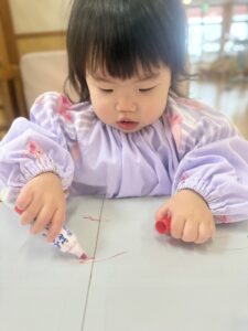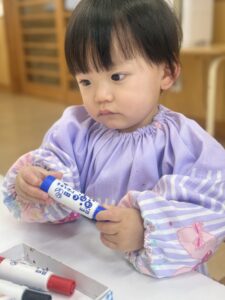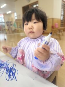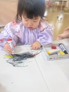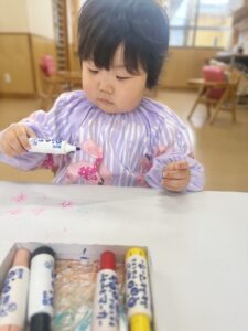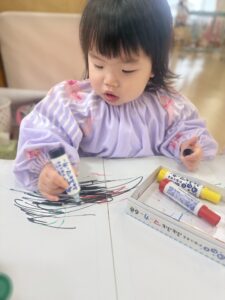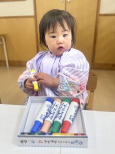 好きな色のペンを持ってお絵描きします!